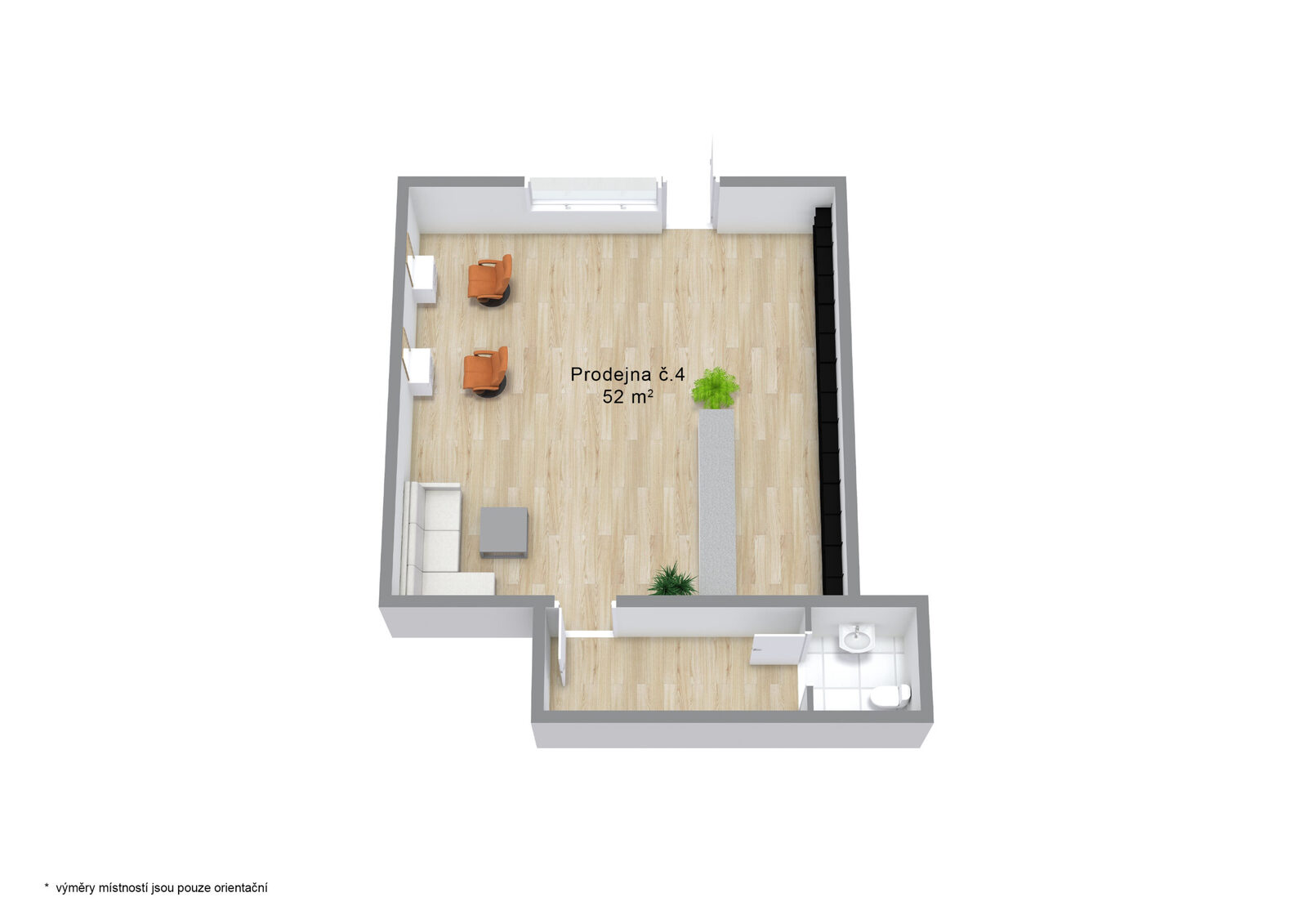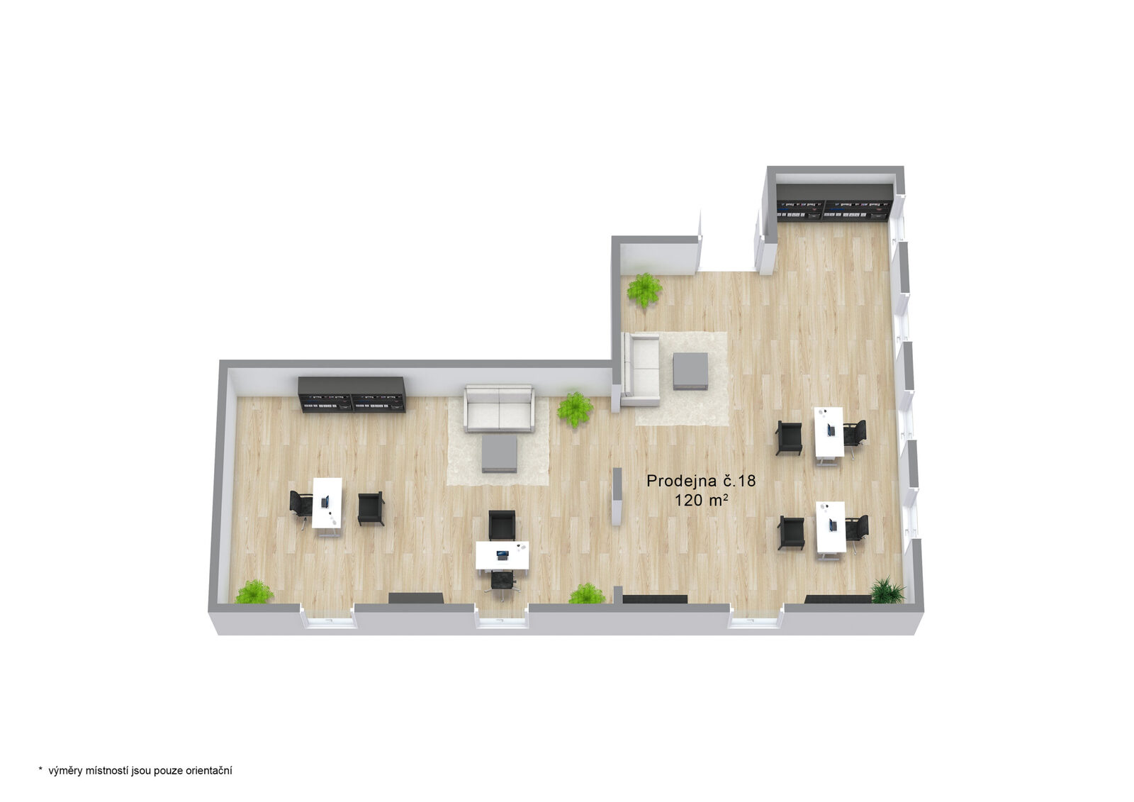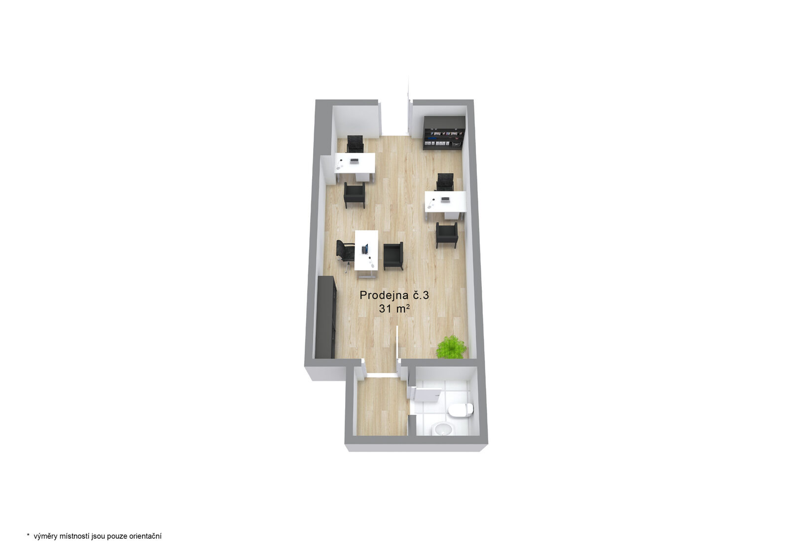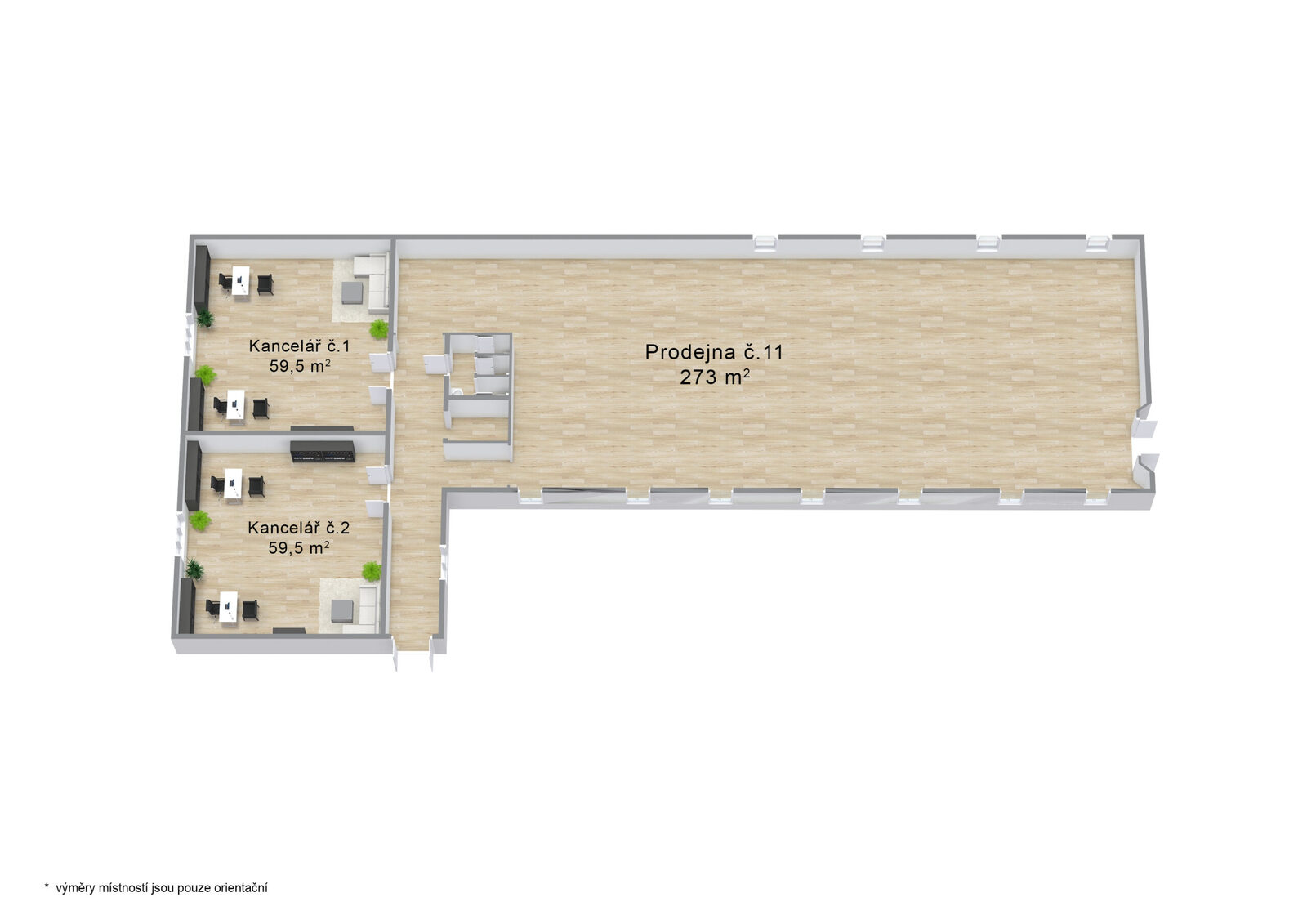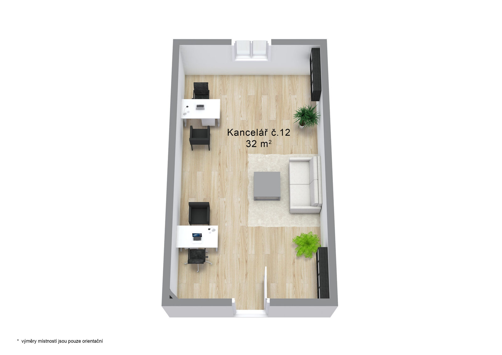 Čisté nájemné:  77,6 m2 x 115,- Kč = 8.924,- Kč